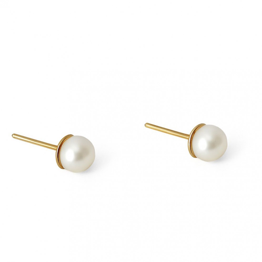 Brinco solitario de perola cult 5mm, prata com banho de ouro...