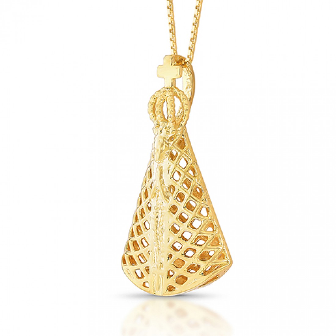 Colar Nossa Senhora Parecida 26mm toda vazada, corrente 45cm, Prata. 362070..