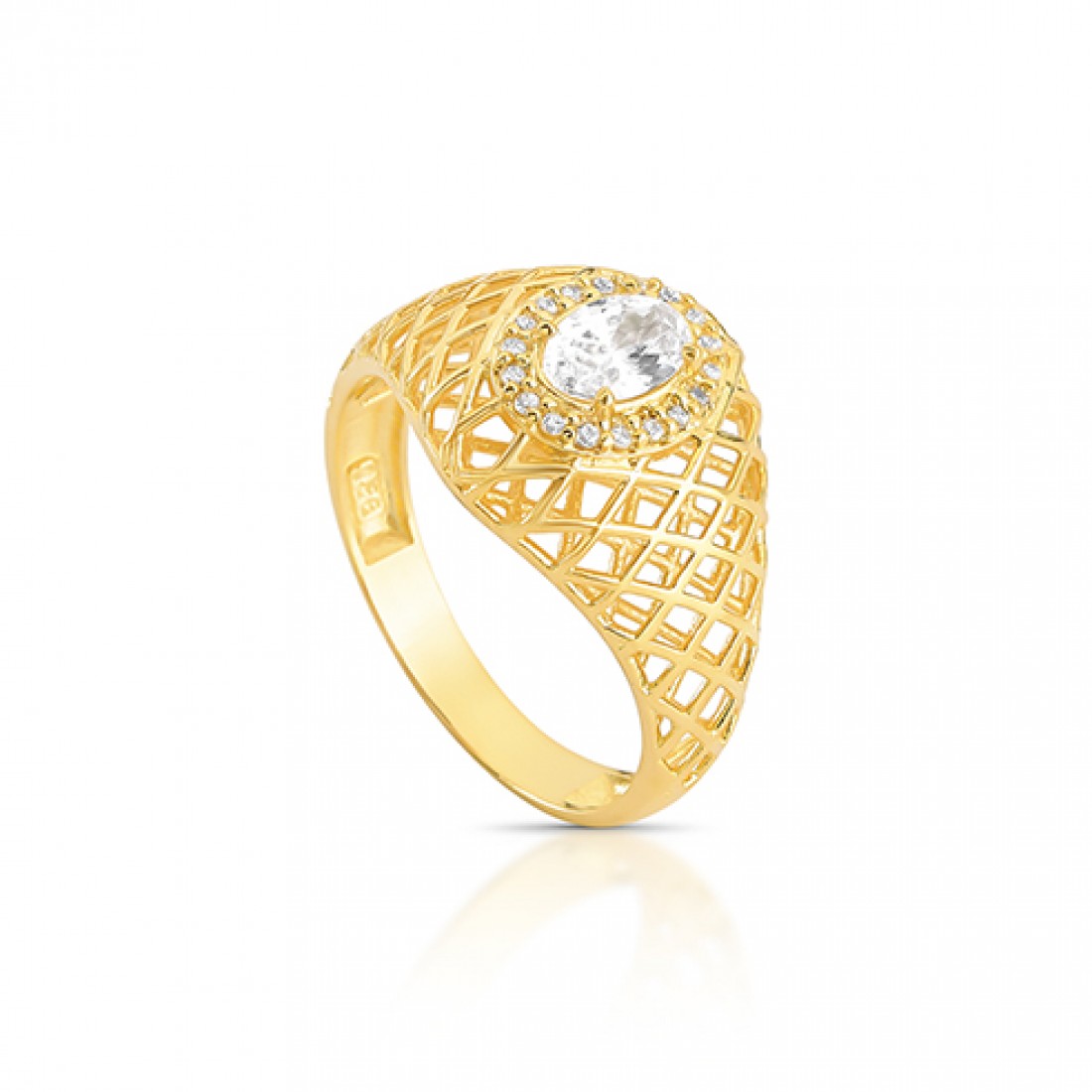 Anel todo vazado com pedra maior cristal 6x4mm. 1415510