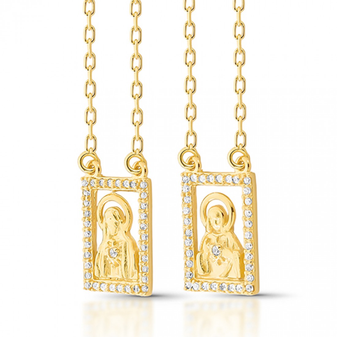 Escapulario Nossa Senhora do Carmo e Sagrado Coração retangular 15x10nn zirconia cristal. 362059..