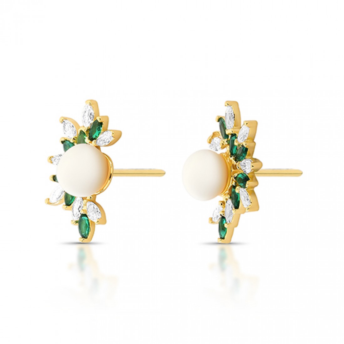 Colar navete cristal e verde esmeralda com perola 6mm, corrente 45 cm. 1635458..