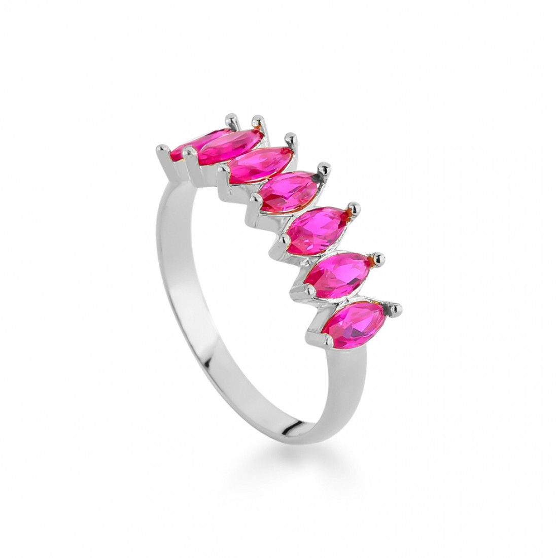 • Anel 7 navetes vermelho rubi. prata. 341476